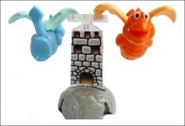 TT008 : Deux petits dragon, un bleu, un orange volant autour d'une tour = 8