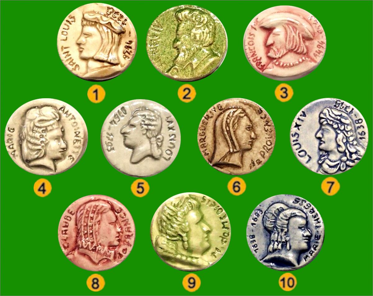 Rois de France - 10 Fèves Brillantes - Nordia - 1992
