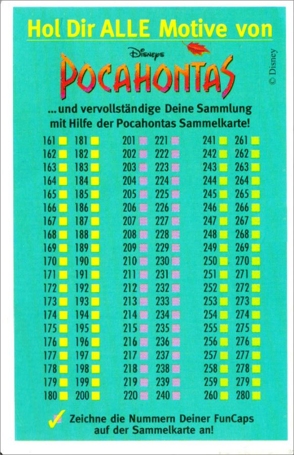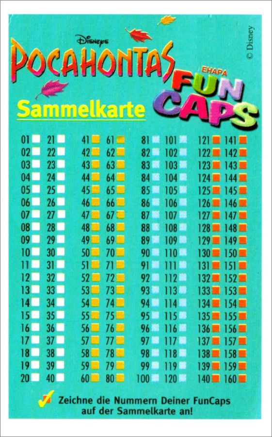 Pocahontas Disney - Fun Caps 280 Pogs - Ehapa 1994 Allemagne