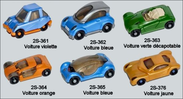 Pour les références 2S-362 et 2S-365, il existe 2 versions de voitures,1 bleue et 1 verte