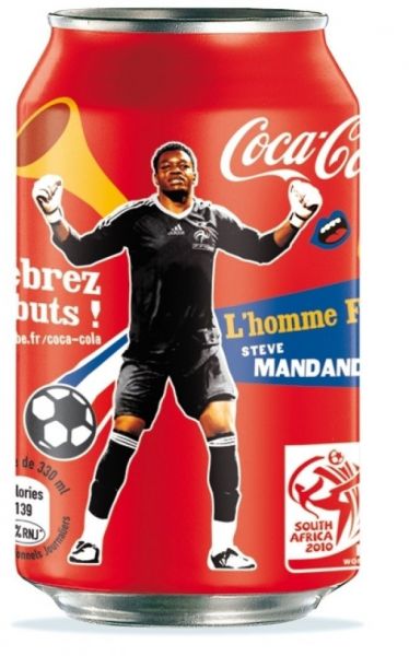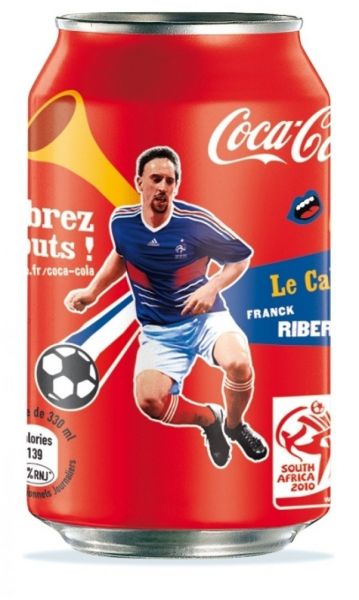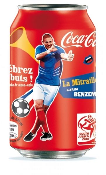 Coca Cola : 12 canettes collectors illustrées par les célébrations d'Anelka, Benzema, Diarra, Evra, Gallas, Gignac, Gourcuff, Govou, Malouda, Mandanda, Ribery, Toulalan.