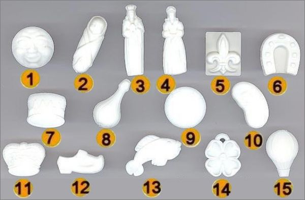 Fèves : 1 à 15 (Suivre la numérotation sur l'image)