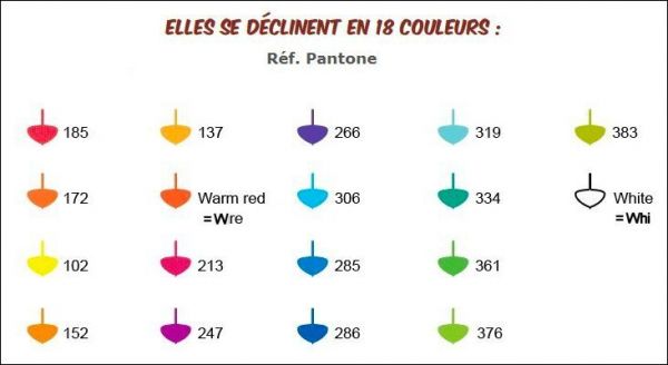Clic sur l'image pour zoomerChaque forme de toupie (A - B - C) existe en 18 couleurs différentes
