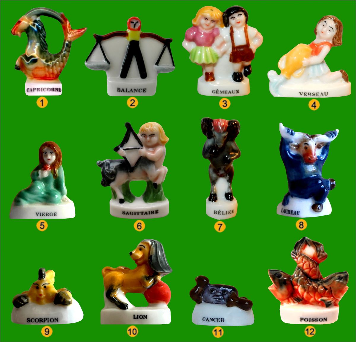 Signes du Zodiaque Latin - Arguydal - Fèves Brillantes -2001Marquage sur le socle des fèves