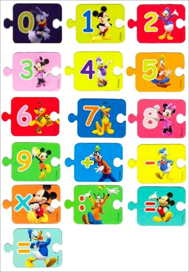 Danone : 0 à 9, +, -, x, :, = (Mickey), = (Donald)
