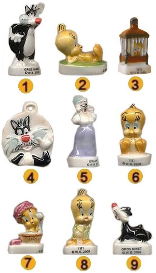 Titi et Gros Minet - 9 Fèves Brillantes - Marquées WB 98