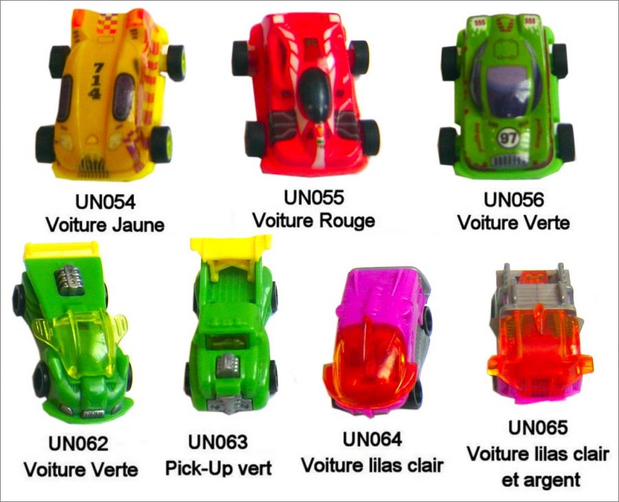 Voitures - Kinder surprise - UN054 à UN056 et UN062 à UN065