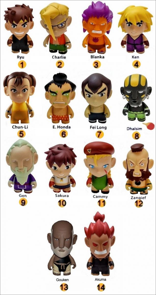 Kidrobot Capcom : 1 à 14 ( Suivre la numérotation sur l'image)