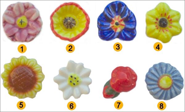 Les fleurs - 8 Fèves Brillantes relief - Nordia Aria 2002