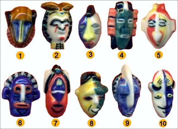 Masques Africains - 10 Fèves brillantes - Prime - 2002