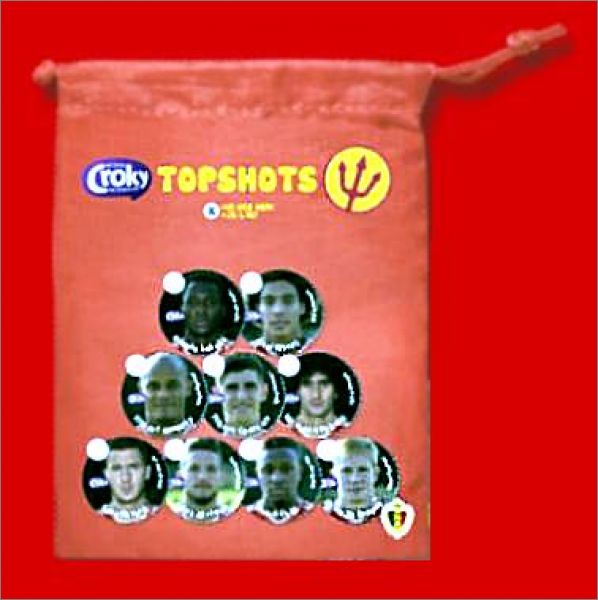Collection de 18 Topshots Diables Rouges avec les paquets de chips Croky de 200g.
