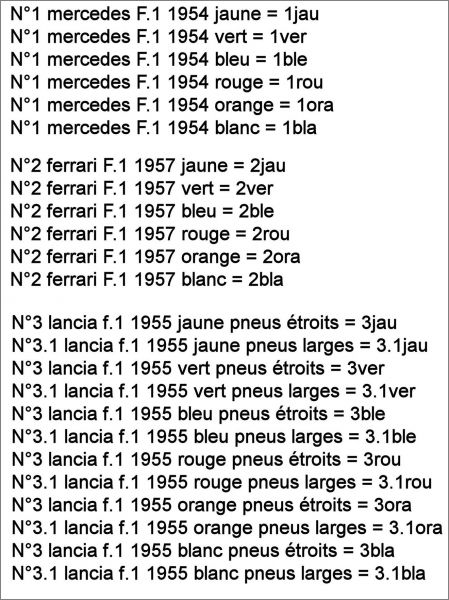 Pour le détail des 12 modèles de voitures voir dans la fiche