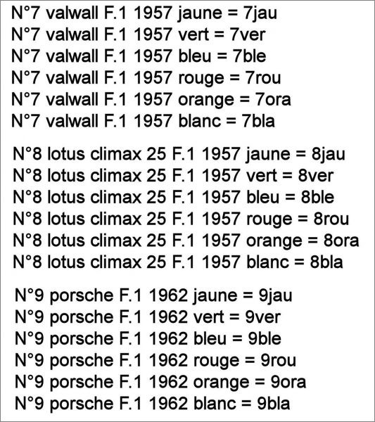 Liste des voitures N°7 à N°9