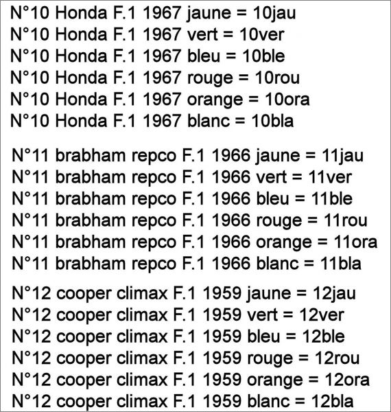 Liste des voitures N°10 à N°12