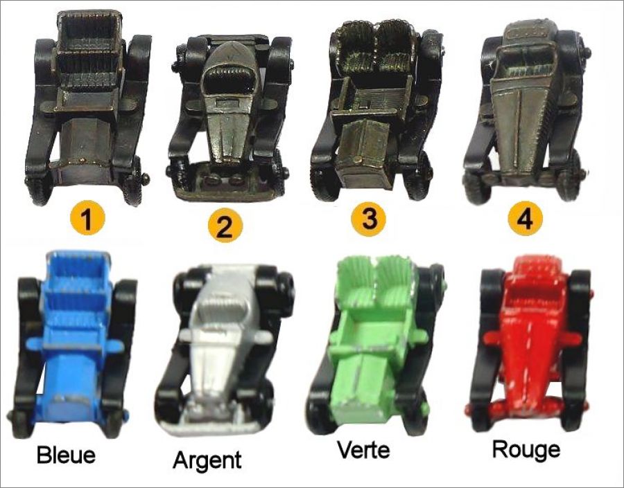 Cette série comprend 4 modèles de voitures métallisées brunies avec une version colorée