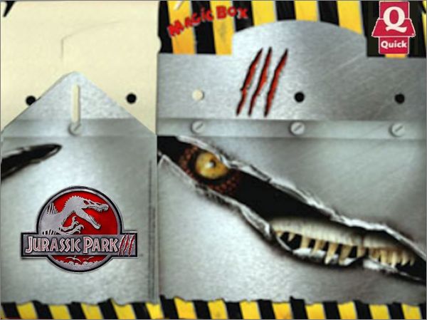 Cette série de 4 marionnettes fut distribuée par la chaîne de restauration rapide QUICK en 2001 pour promouvoir la sortie du film Jurassic Park III au cinéma.