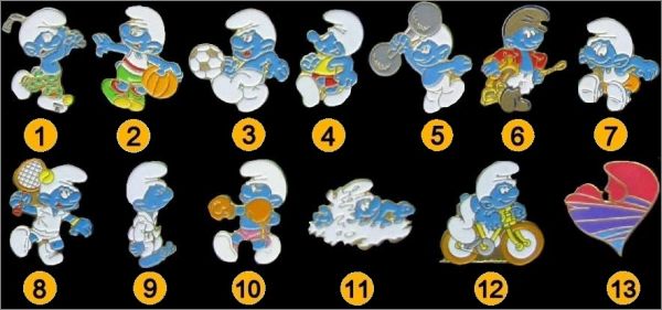 Schtroumpfs sportifs - 12 pin's Cora - 1993