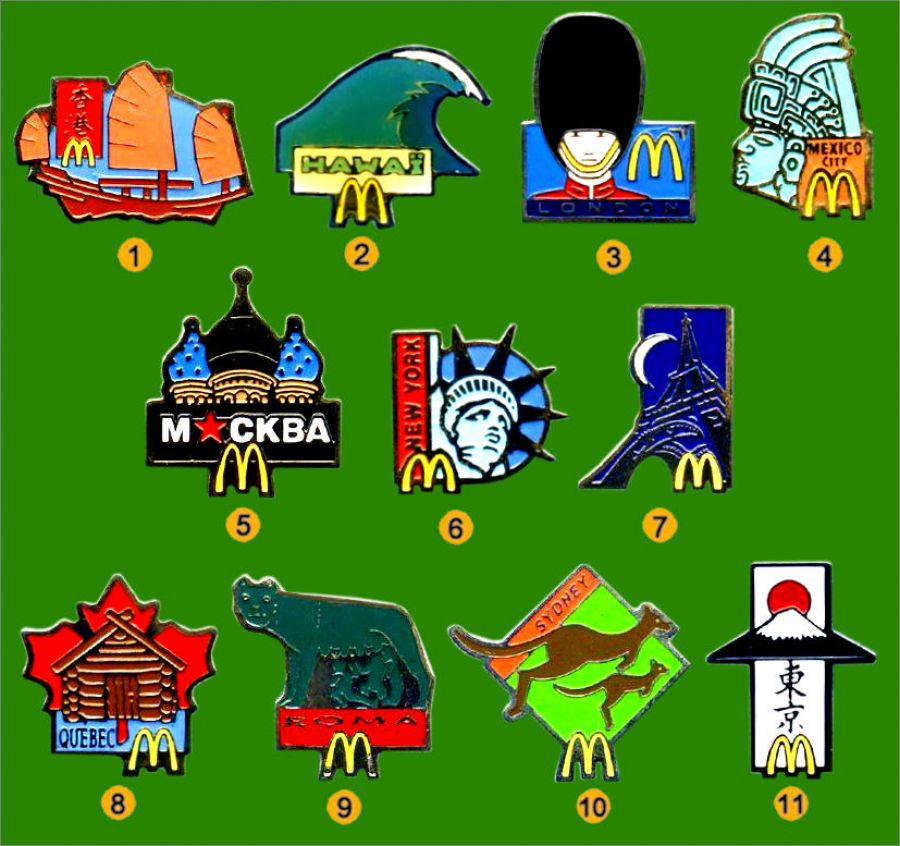 On devrait appeler cette collection : Le tour du monde, plutôt que Les capitales.. En effet, Hawaï et New-York ne sont pas des capitales.. Par ailleurs la date de cette série n'est pas 1995, mais 1991 pour 5 pin's et 1992 pour les 6 autres.