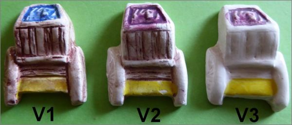 Il existe des variantes de la fève n°10, voir photo (V1 à V3).