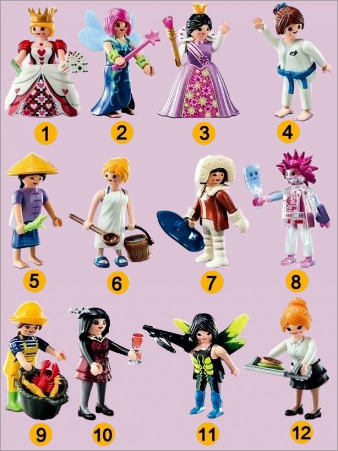 Playmobil: 1 à 12 (Suivre la numérotation sur l'image)