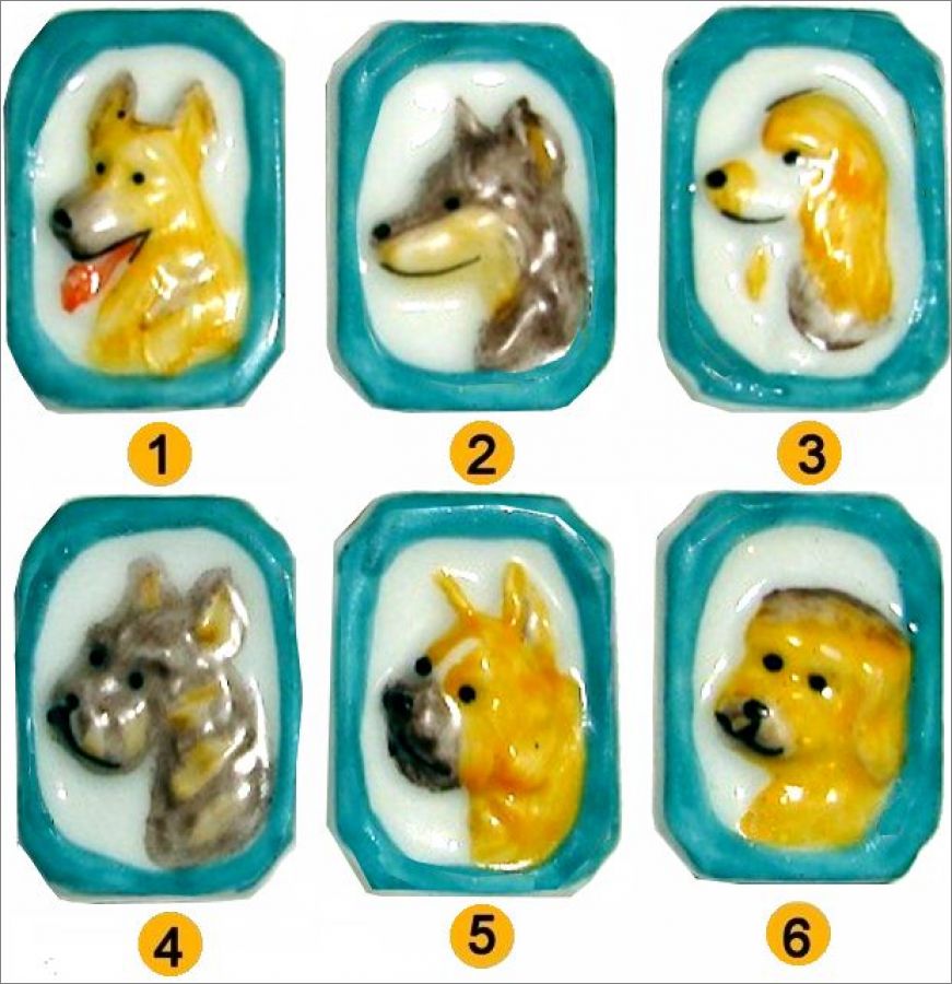Chiens - 6 Fèves brillantes - B.E.G.- 1998