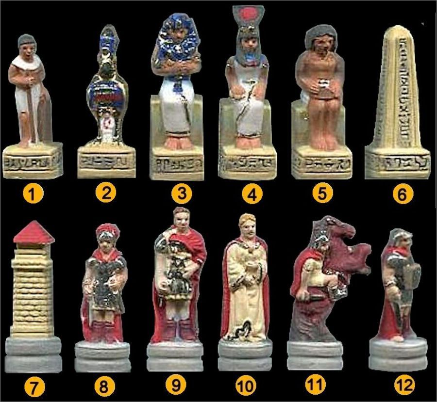 Jeu d' Echec Egypte contre Rome 12 fèves mates et or - 2012