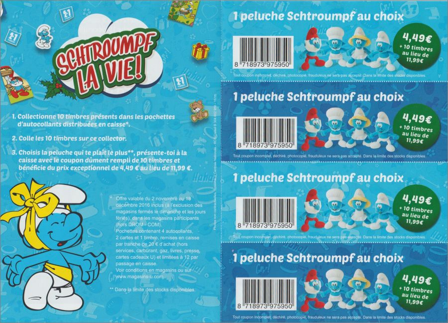 Collectionner 10 timbres présents dans les pochettes d'autocollants distribuées en caisse.