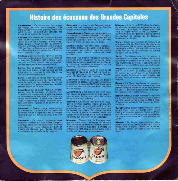 Les Ecussons des Grandes Capitales - Danone - années 70