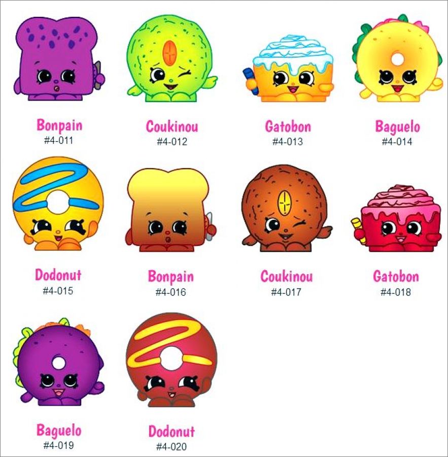 Shopkins rare *Rar : Fru5, Fru10, Bou15, Bou20, Con23, Con24, Con28, Con29, Acc33, Acc35, Acc38, Acc40, Ust41, Ust43, Ust44, Ust46, Ust48, Ust49, Jar53, Jar55, Jar59, Jar61