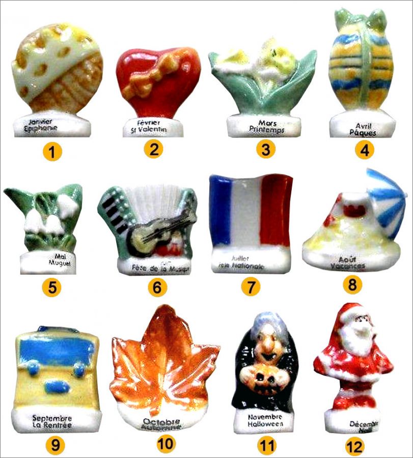 Les mois et évènements de l'année - 12 Fèves Brillantes 2003Marquage sur le socle des fèves :