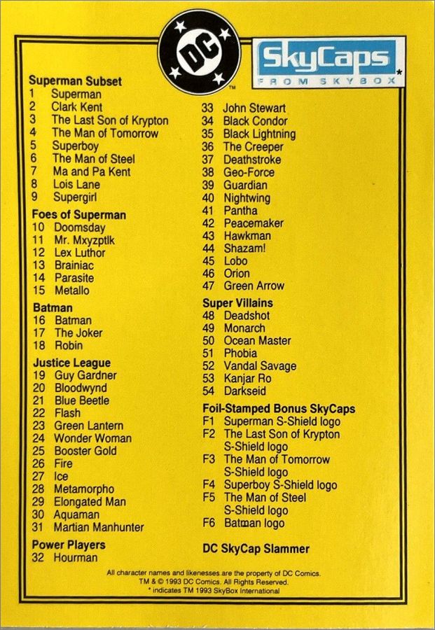 Collection de 54 Pogs, numérotés de 1 à 54 + 6 pogs (Bonus Foil-stamped) F1 à F6 (voir la checklist et l'image)