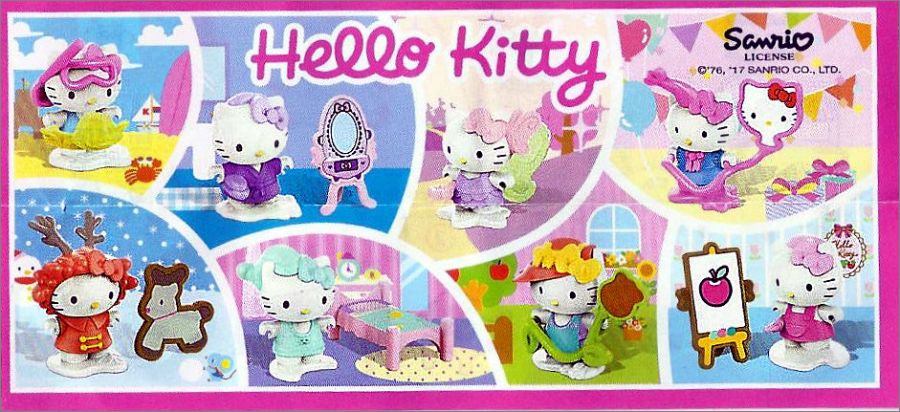 Chaque œuf contient une figurine Hello Kitty + des accessoires + un décor (voir l'image de présentation)