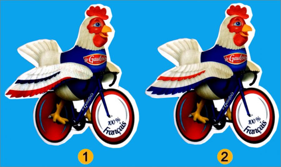 1 : Cocotte avec des bandes sur son aile Bleu, Blanc, Rouge (en partant du haut de l'aile) = BBR