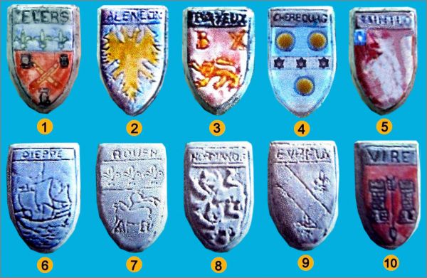 Blasons de Normandie 10 Fèves Brillantes Moulin à Huile 1990