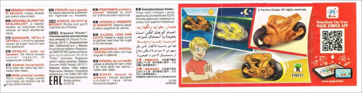 Motos phosphorescentes - Kinder Sprinty EN031 à EN034 - 2018