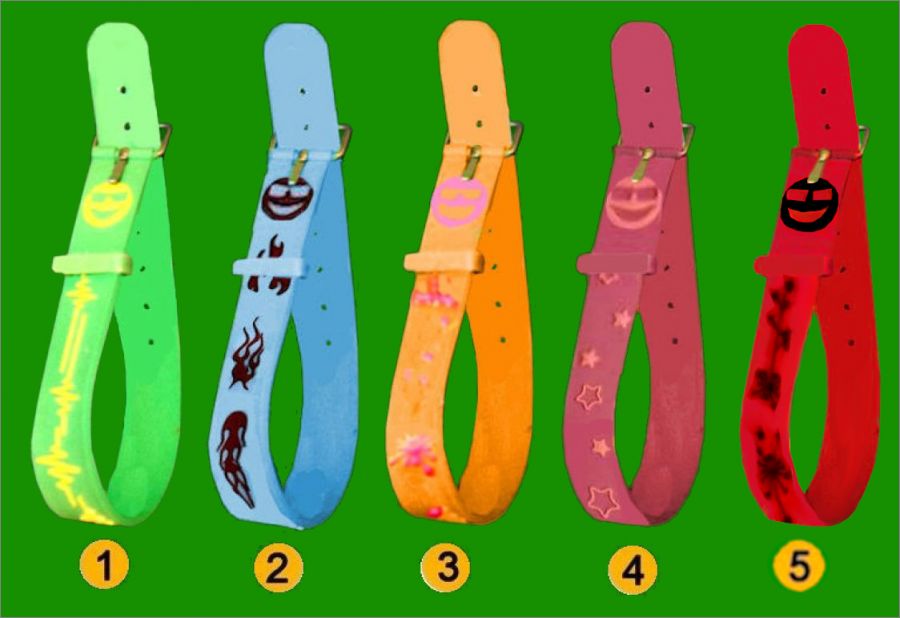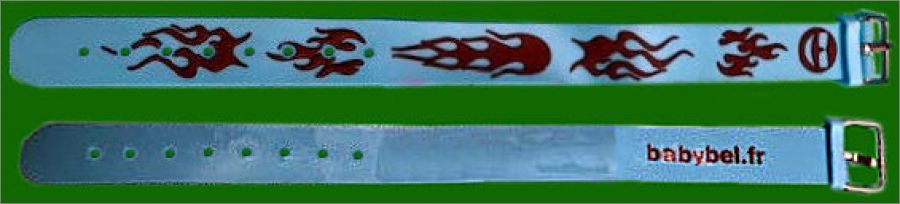 Collection de 5 bracelets en plastique souple (silicone) avec fermoir, longueur réglable (Longueur totale 21cm, largeur 1.5cm ) inscription babybel.fr à l'intérieur