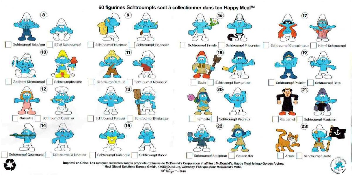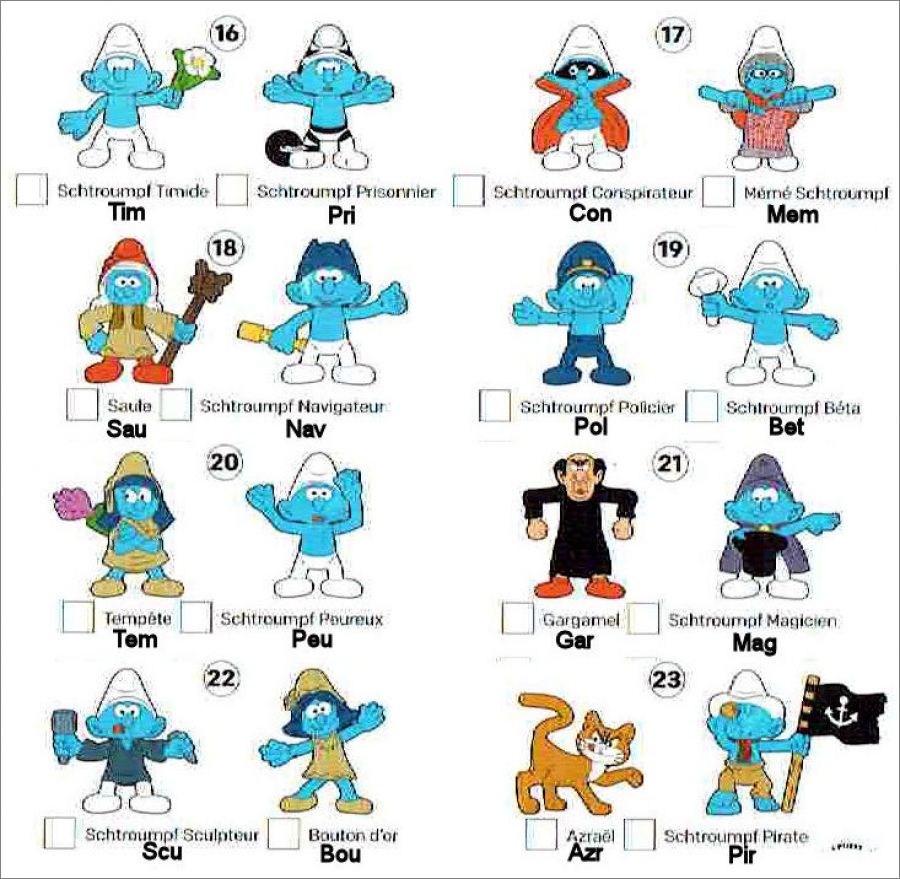 Le référencement suit le BPZ avec en plus les 3 premières lettres du nom du Schtroumpf