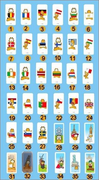 Il existe un domino spécial représentant Garfield tenant le drapeau Européen.