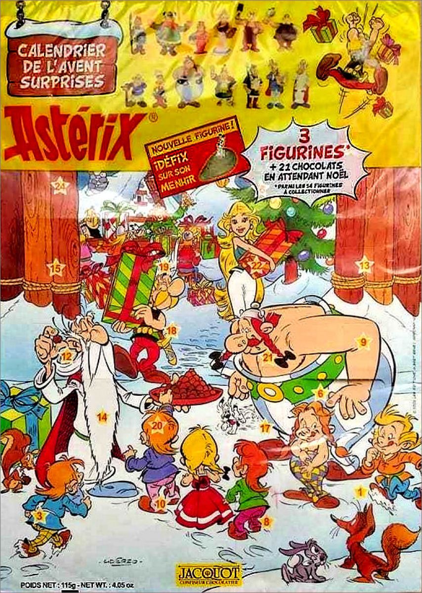 - La figurine d'idéfix sur son menhir sortie avec le calendrier de l'avent de 2005 soit au total 14 figurines