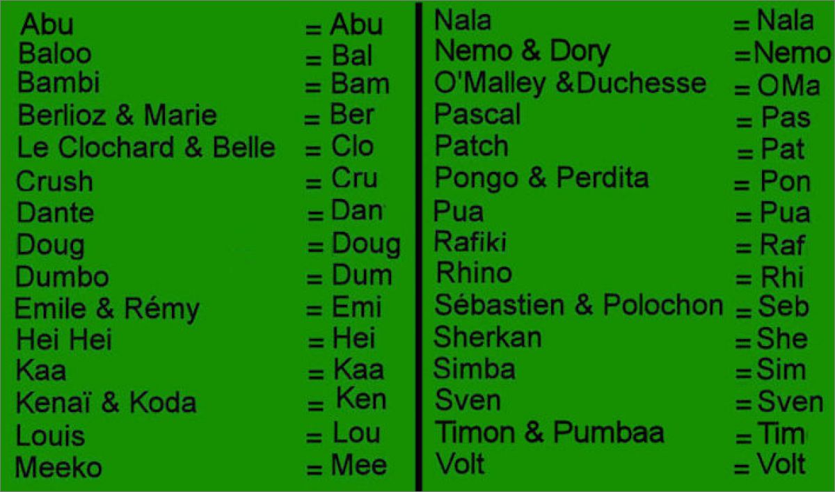 Pour le référencement on a pris les 3 ou 4 lettres du nom du personnage ou du premier quand il y en a 2