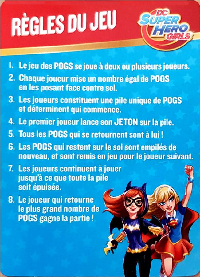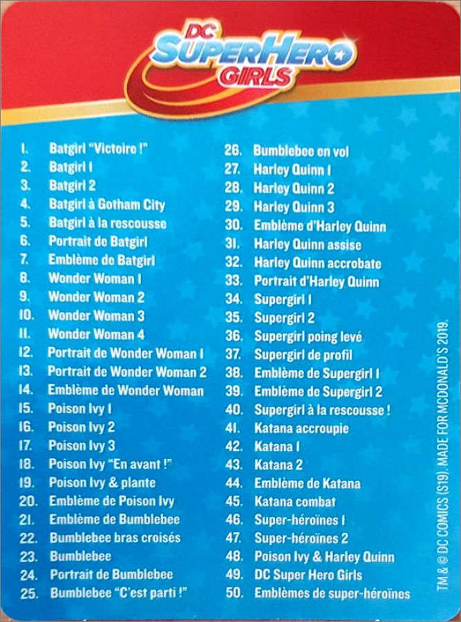 Retrouvez à partir du 4 septembre 2019 une collection créée spécialement pour McDonald's France en collaboration avec la Warner Compagny 200 Pogs "faisant le lien entre les différentes générations sont ainsi à collectionner". Les petits et les grands pourront donc jouer avec ces pogs à l'effigie , des super héros