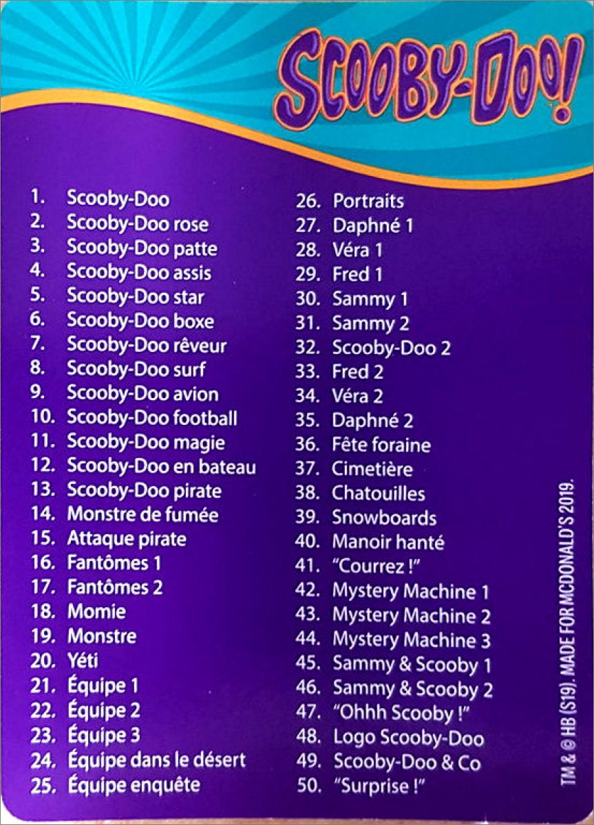 Scooby Doo = Sco1 à Sco50Lien vers les livres Hachette 2019