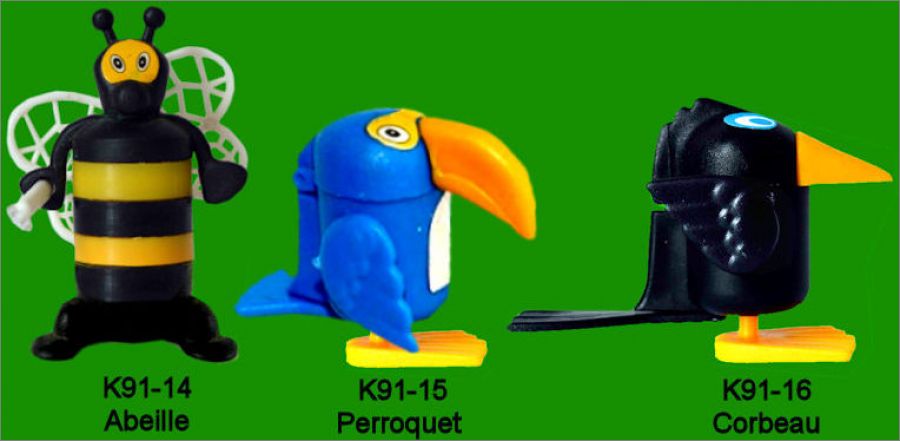 Abeille, Corbeau et Perroquet Kinder K91-14 à K91-16 - 1991