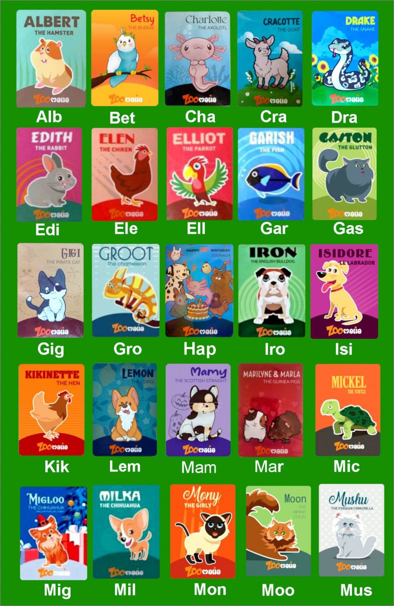 Zoomalia - Magnets d'Animaux - juin 2025 Classement Alphabétique avec les 3 premières lettres du prénom de l'animal50 magnets d'animaux à collectionner