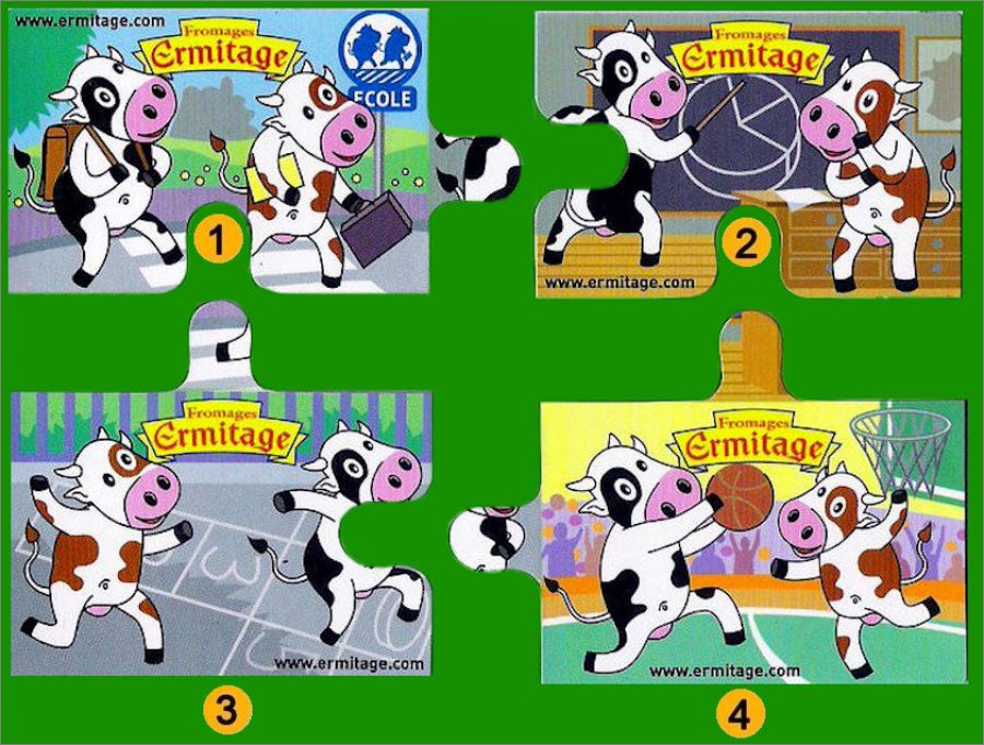 Journée à l'école - 4 magnets puzzles Fromages Ermitage 2009