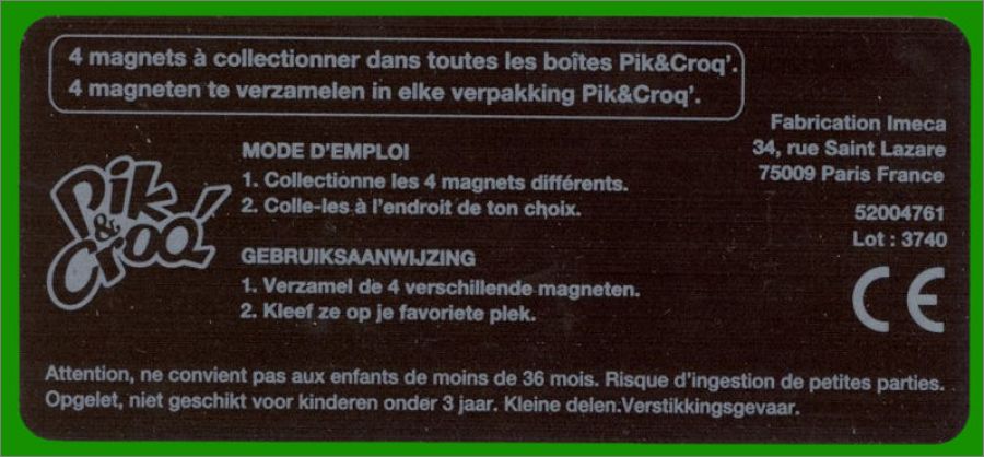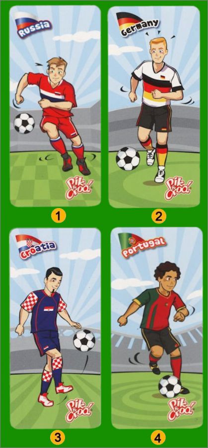 Collection de 4 magnets de football offert par la marque La Vache qui rit dans les boites de Pik & Croq (Belgique)