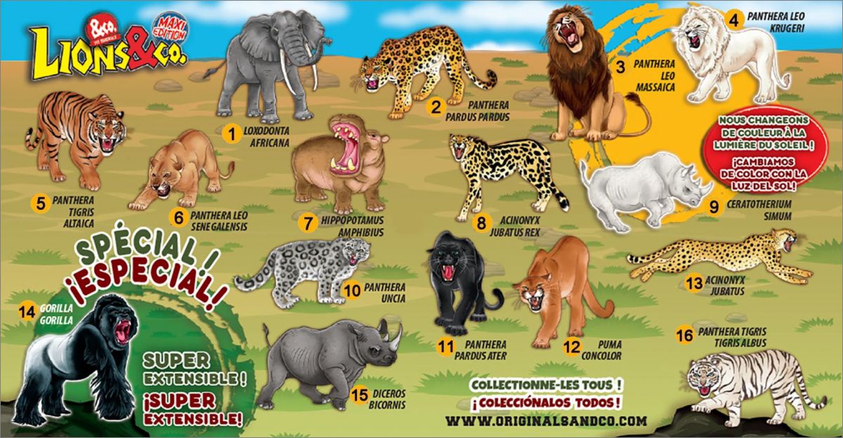 Chaque pochette contient un animal + un mini posterDétail des animaux :