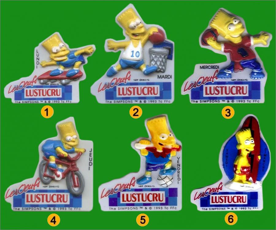 Bart Simpson et les sports 6 Magnets Les œufs Lustucru 1993