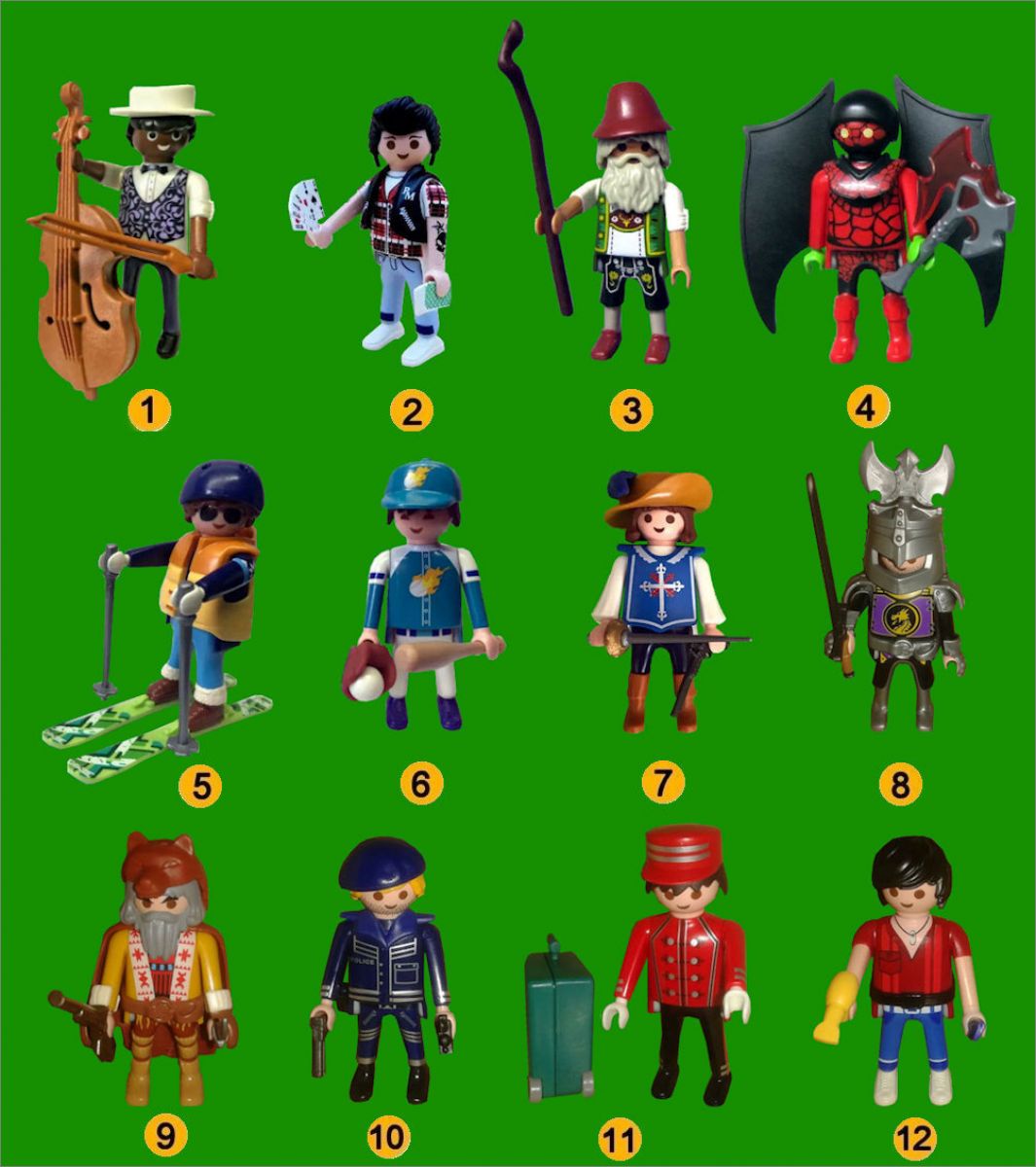 Playmobil: 1 à 12 (Suivre la numérotation sur l'image)