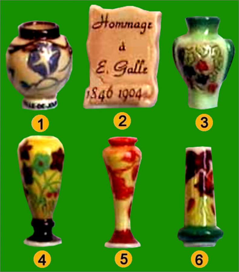 Collection de 6 fèves en Hommage à Émile Gallé 1846 1904 de l'école de Nancy.